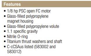 Impeller:Glass-filled polypropylene & Ceramagnet "A" (Barium Ferrite)