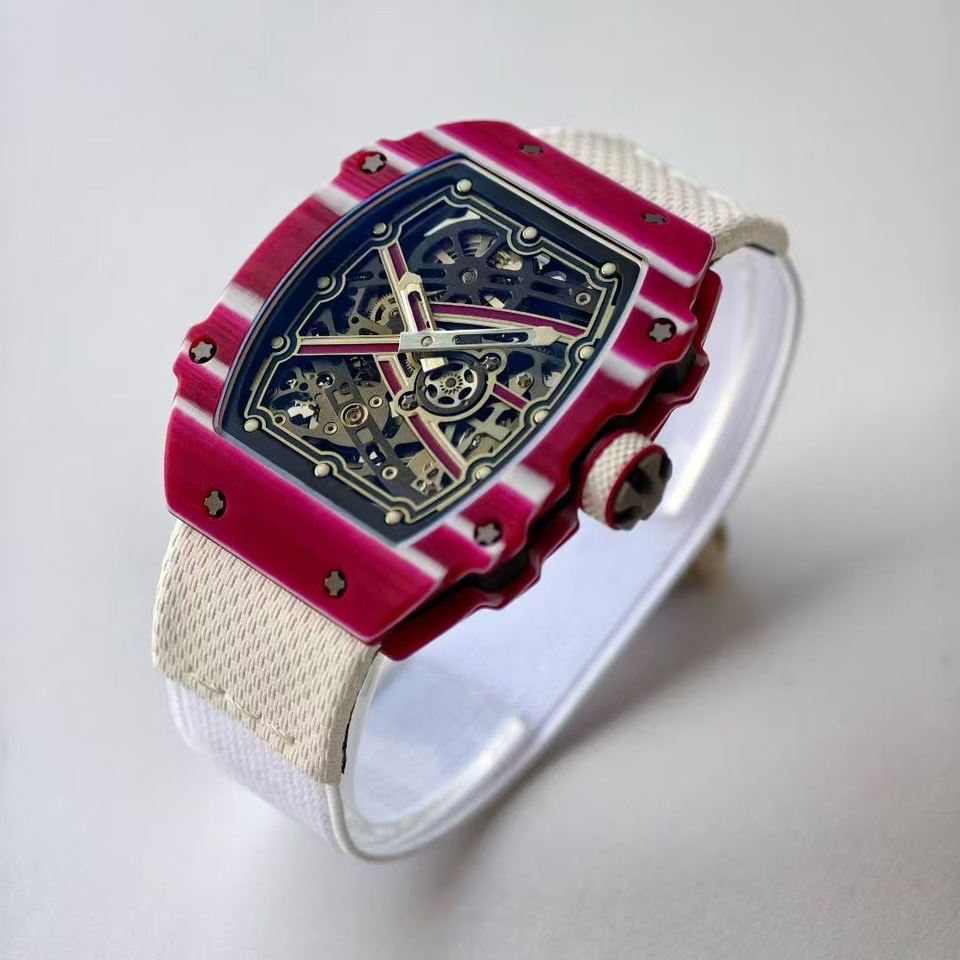 Reloj Automático de Esqueleto para Hombre con Personalización Avanzada, Bisel Rojo de 7.8mm, Caja de Fibra de Carbono Compuesta, Reloj Deportivo de Pulsera