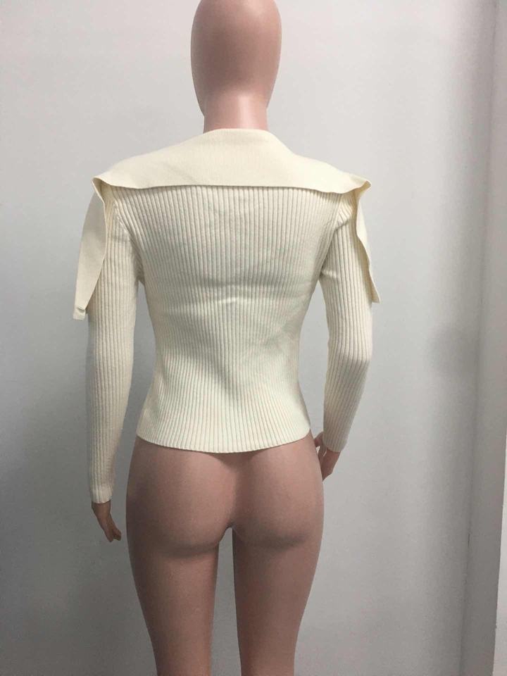 Suéter de punto de manga larga para mujer, de diseño avanzado, con solapa grande, de color liso, ajustado, de moda