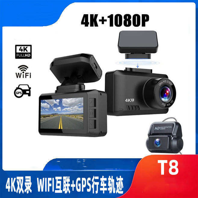 Cámara de Coche 4K de Doble Lente Avanzada con Visión Nocturna, Conexión WiFi, Sensor de Movimiento, Grabación de Video y Protección de Estacionamiento