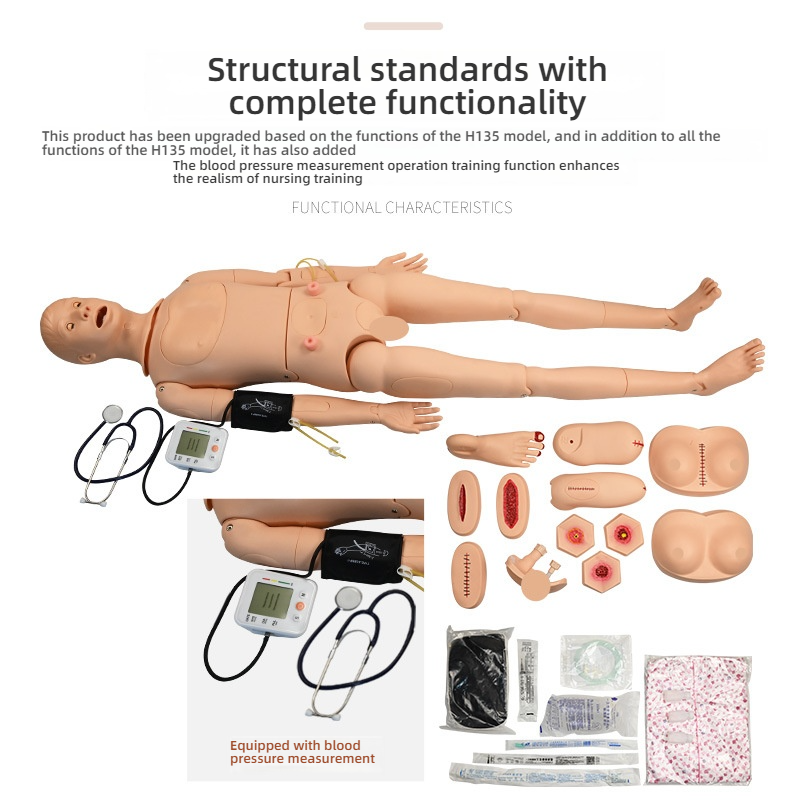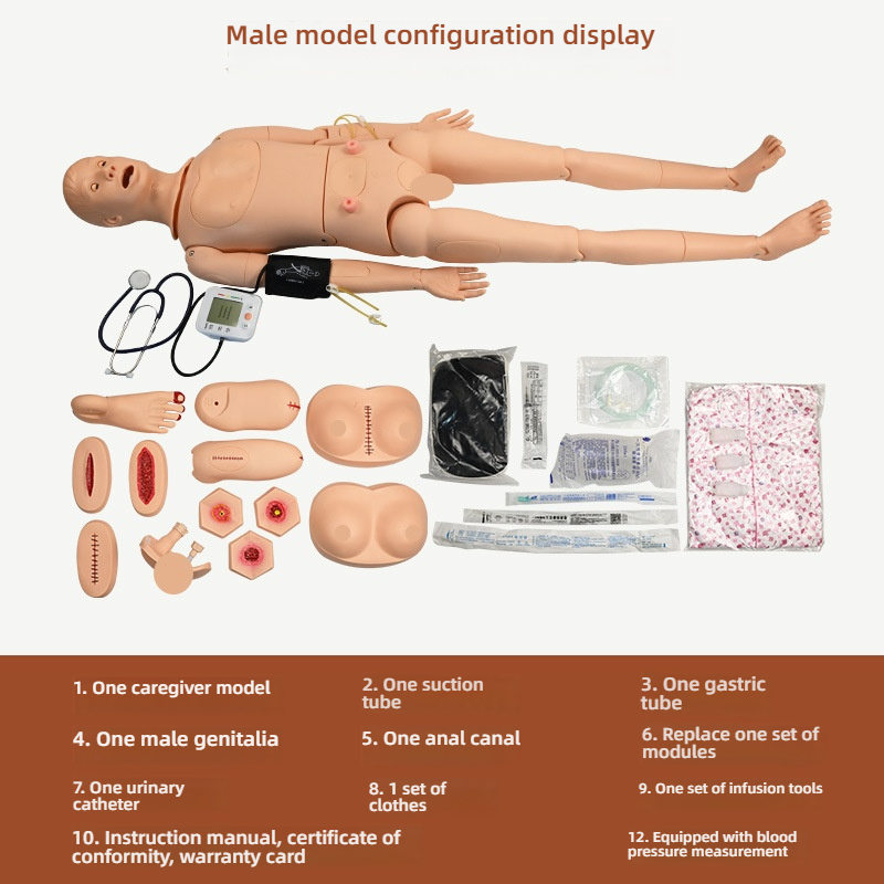 Maniquí de Enfermería de PVC Avanzado con Funciones Completas y Medición de Presión Arterial para Entrenamiento Médico, Módulos de Trauma