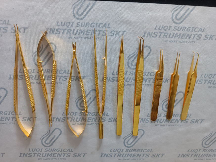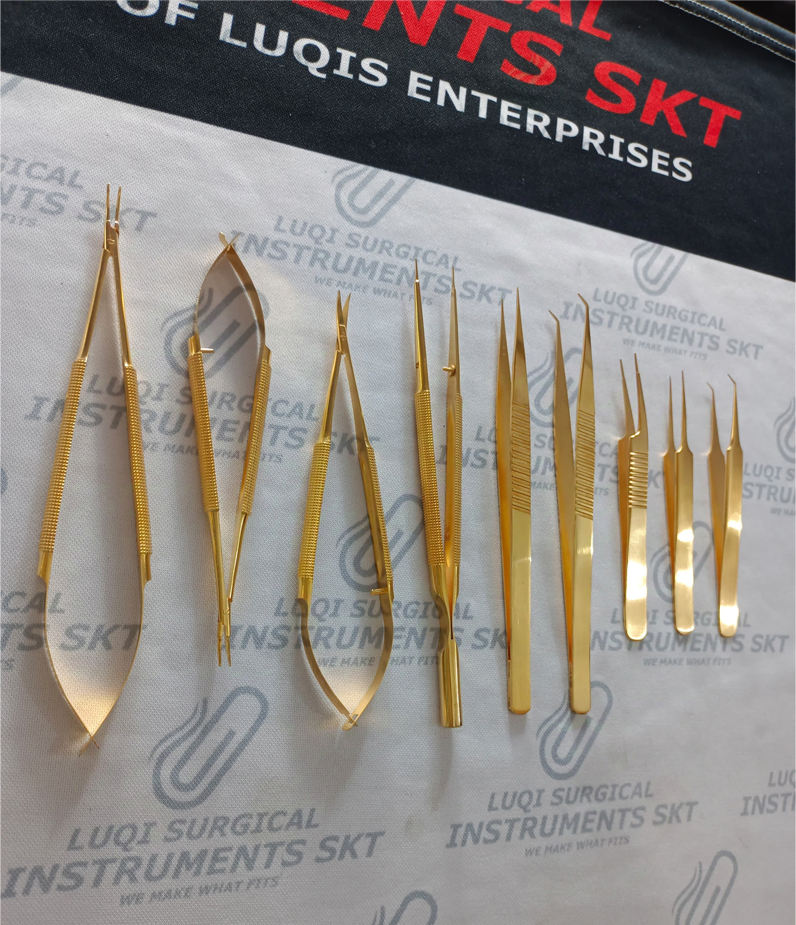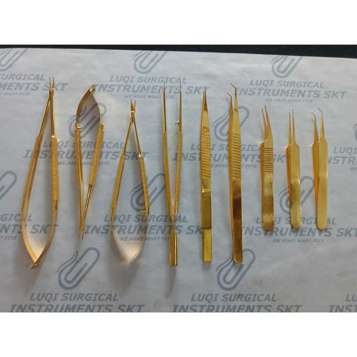 Juego de Instrumentos de Microcirugía con Recubrimiento de Oro Avanzado, Kit de Cirugía Manual Microquirúrgica de Acero Inoxidable Alemán, Certificado CE