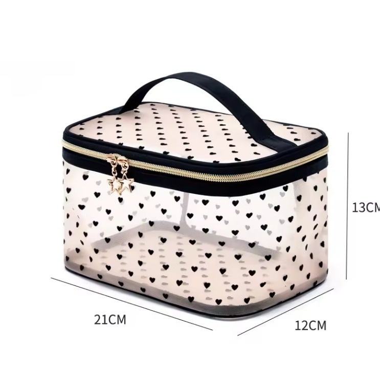 Advanced Love Simple Mesh Bolsa de cosméticos de mano con cierre de cremallera Bolsa de almacenamiento impermeable de moda para el cuidado de la piel