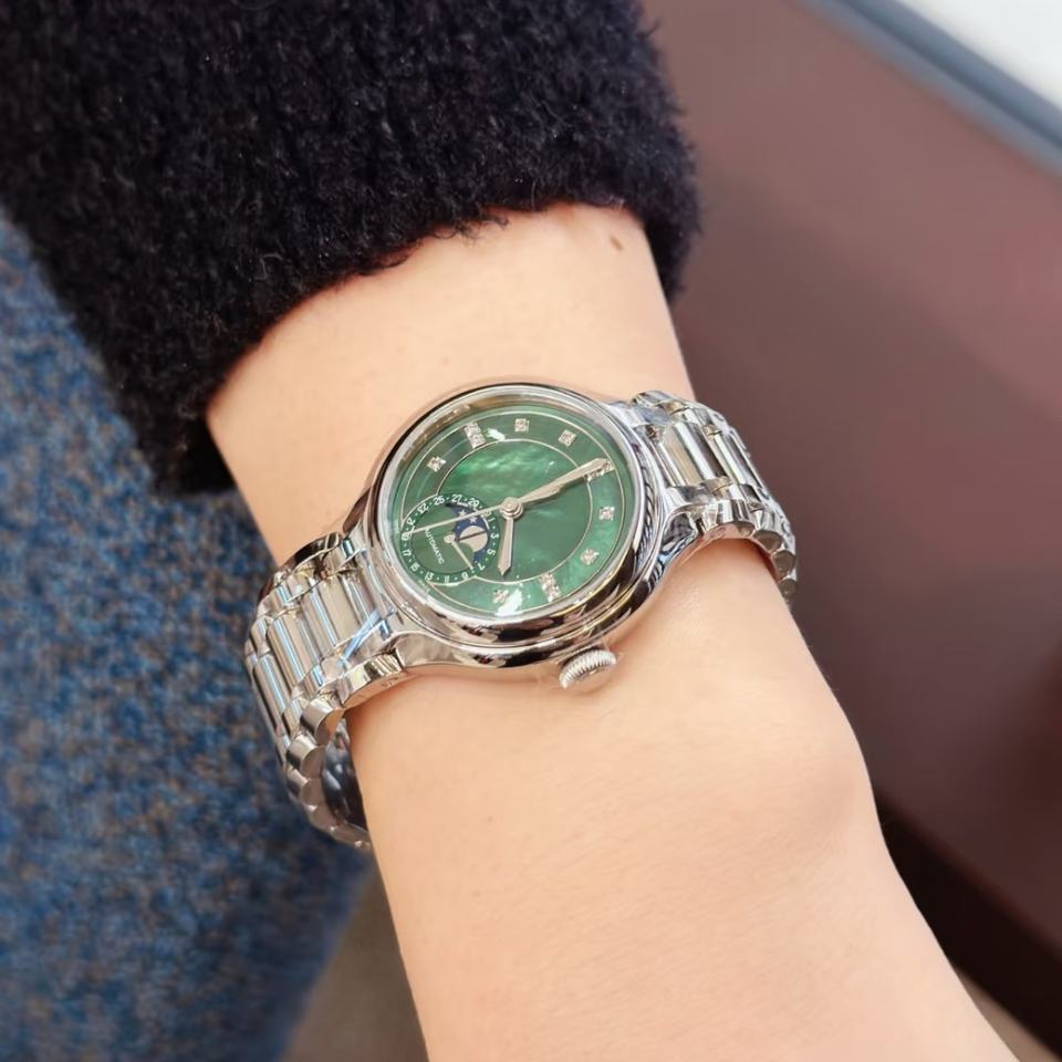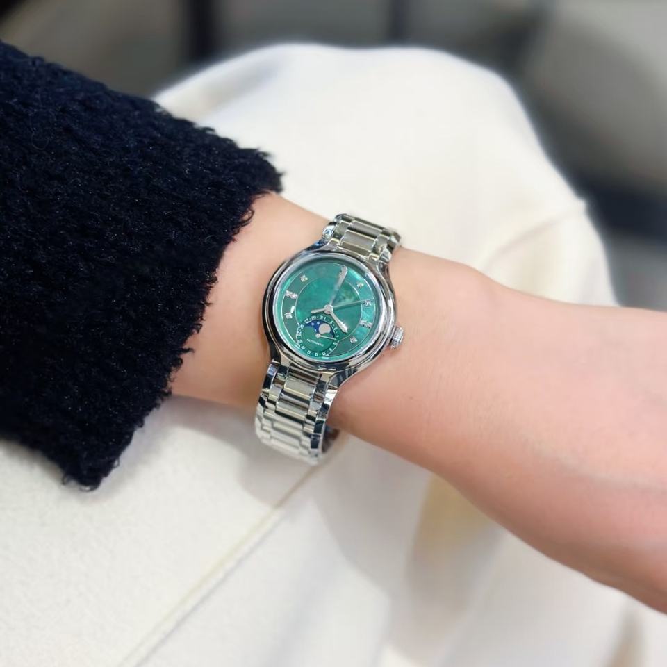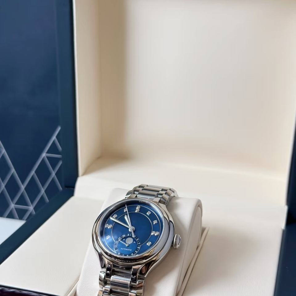 Reloj de Lujo Avanzado con Movimiento Mecánico Automático, Esfera de Nácar, Visualización de Fase Lunar y Estrellas, Resistente al Agua, Longines.
