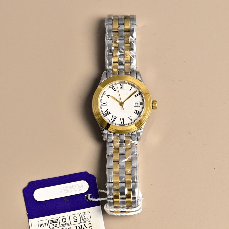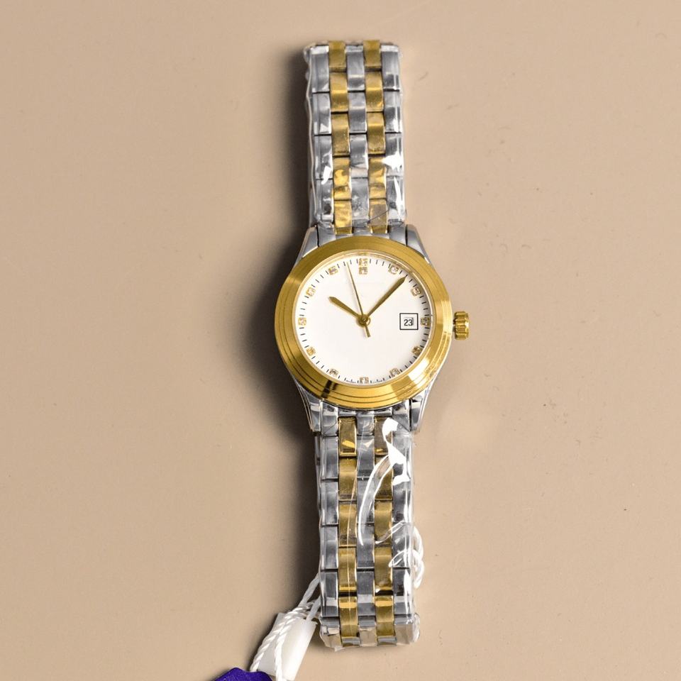 Reloj de Lujo Avanzado con Movimiento de Cuarzo de Precisión, Correa de Acero de Doble Color, Marcadores de Hora con Diamantes, Cuerpo Delgado, Resistente al Agua, Longines