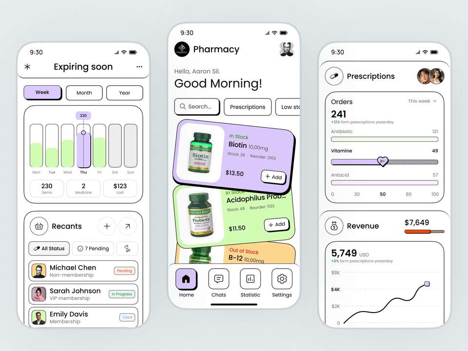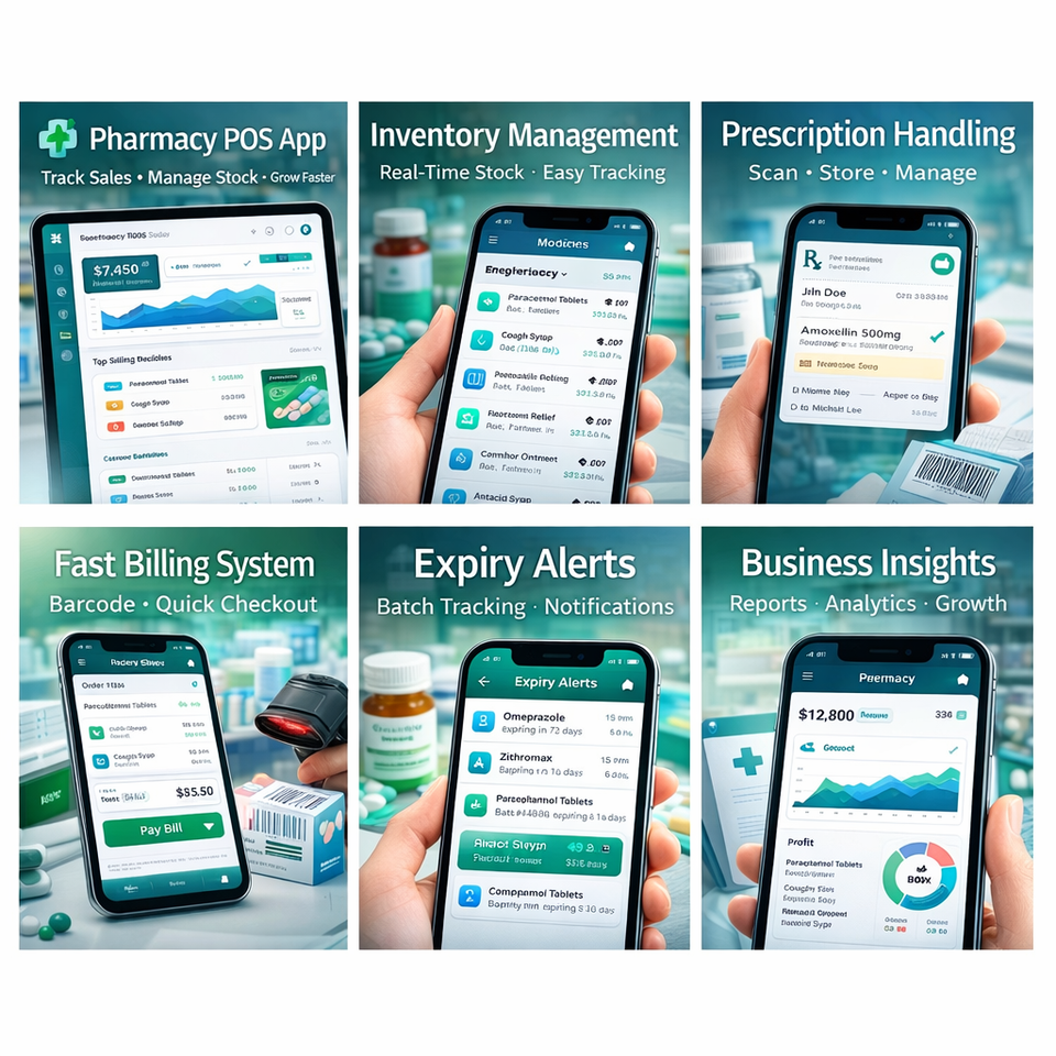 Aplicación Móvil POS Avanzada para Farmacias con Gestión de Recetas, Sistema de Facturación, Seguimiento de Inventario e Información de Ventas