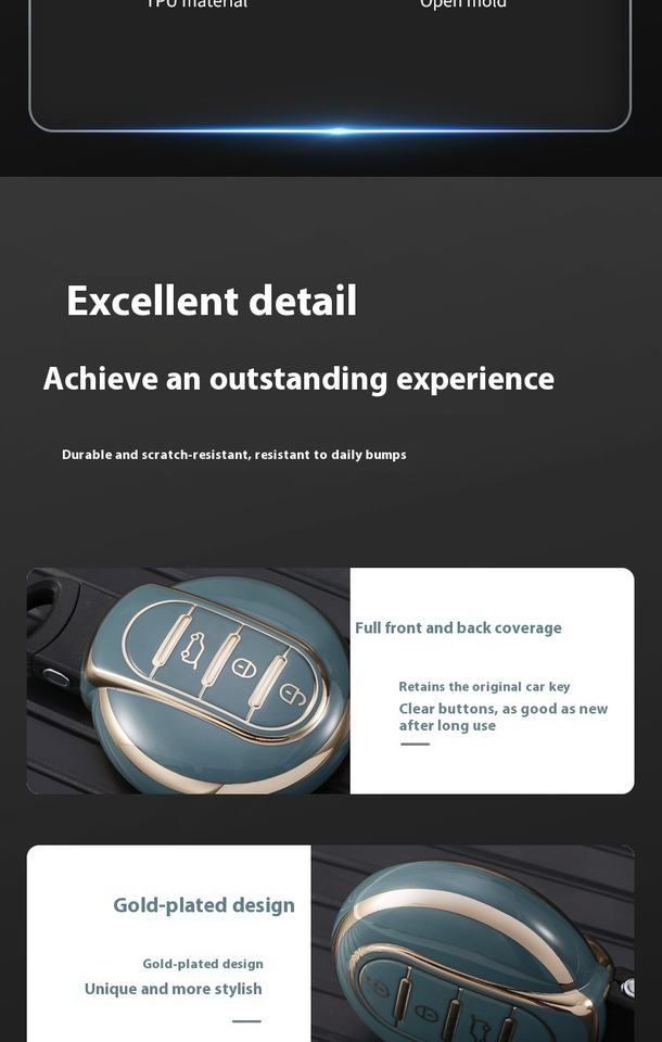 Material TPU: El material TPU proporciona una funda suave, flexible y duradera para la llave del coche, asegurando una protección de larga duración y un agarre cómodo.