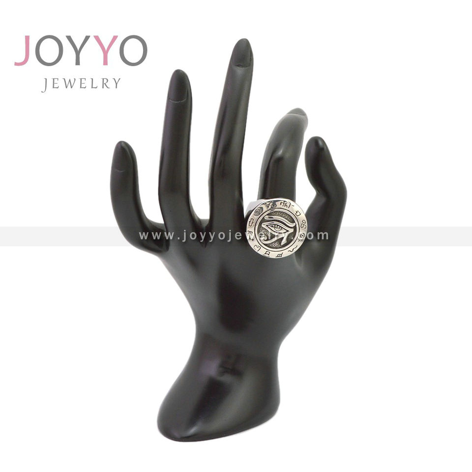 Anillo de Acero Inoxidable Plateado con Textura Avanzada Ojo de Horus, Amuleto del Antiguo Egipto, Joyería para Hombres