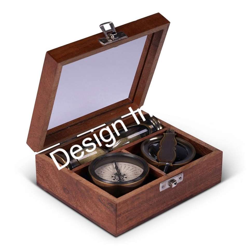Reloj y brújula con temporizador de arena aventurera, caja de madera con acabado Natural, reloj de arena personalizado, 15 minutos, 30 minutos