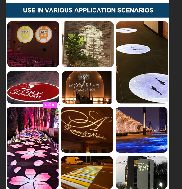 Proyector de Publicidad Gobo LED de 60W para Exteriores, Luces con Múltiples Imágenes de Logotipos, Clasificación IP67, Ra85, Temperatura de Color 8500K