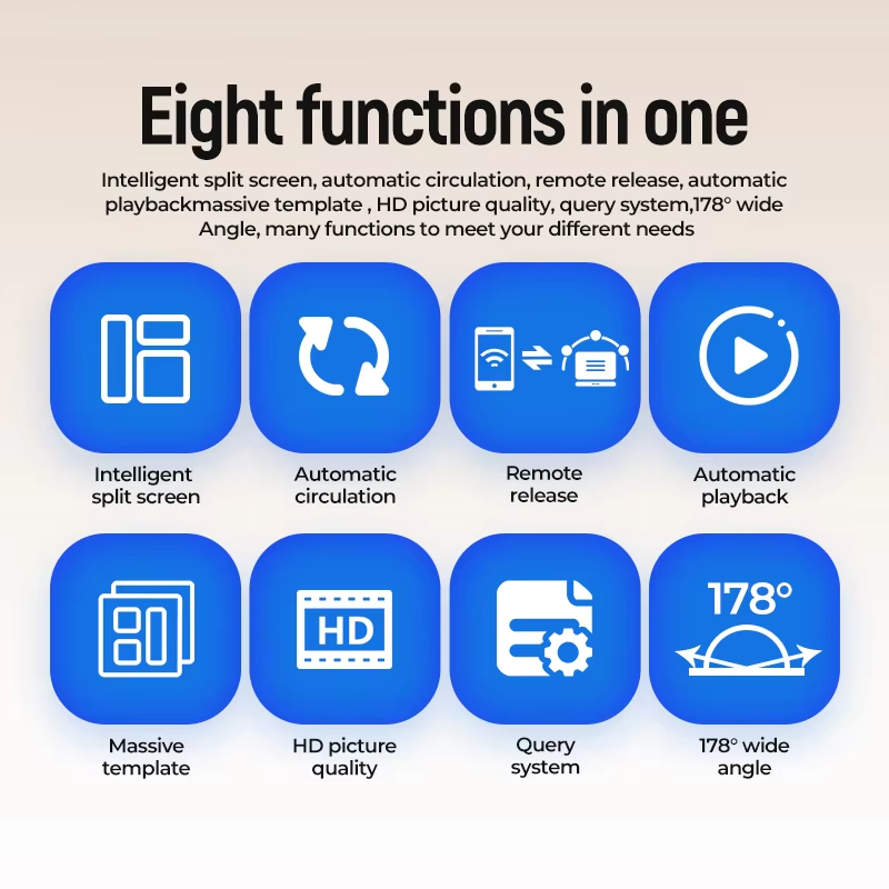 Función de visualización:Video/Texto/Imagen/Hora/Texto 3D/Office/SWF