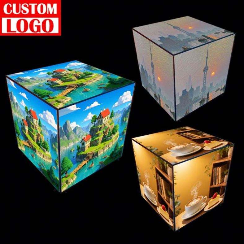 Caja de luz LED personalizada con logo impreso en forma de cubo