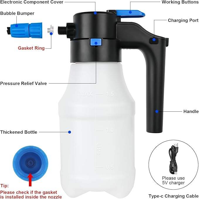 Aegis NC-893 - Pulverizador de Espuma Eléctrico Inalámbrico de 1.5L, con Batería de Litio, Material de PVC, Diseño Compacto, Lavador de Autos y Cuidado Automotriz