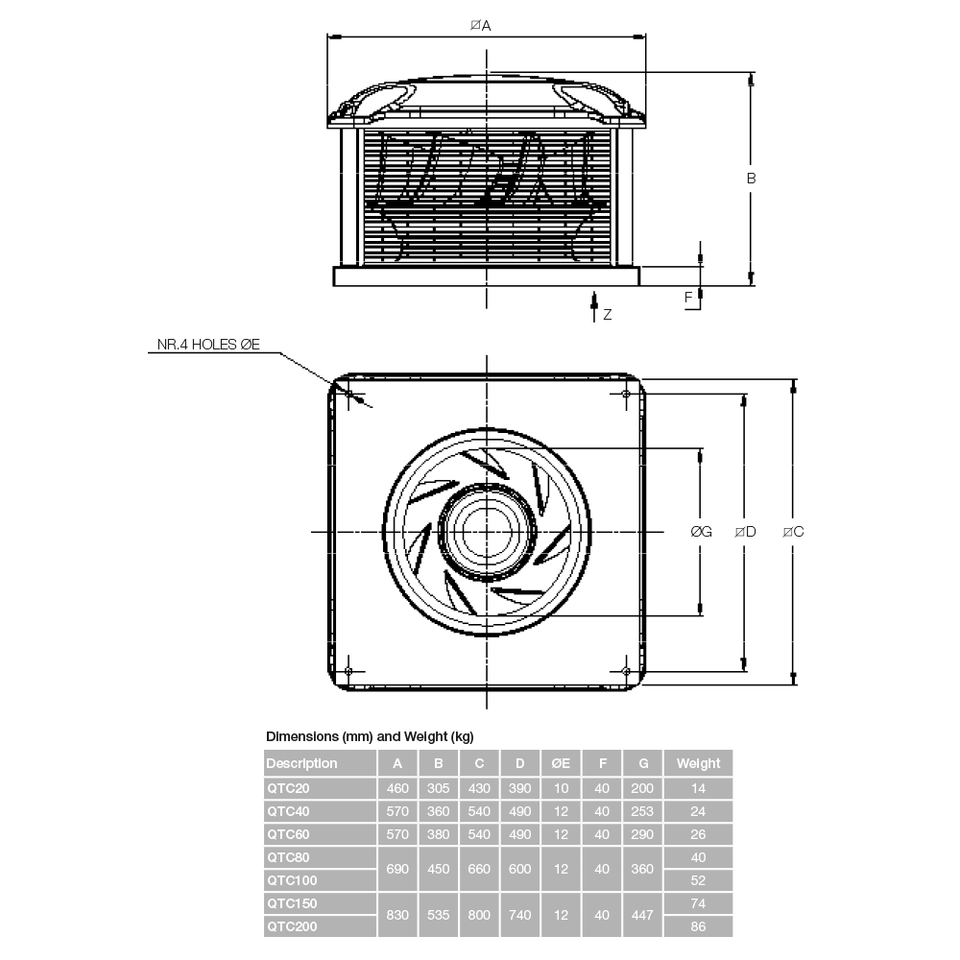 Aerauliqa, ventiladores de ventilación industriales compactos de marca italiana, motor de CA de 3pH, mantenimiento seguro y fácil, 2 años de garantía