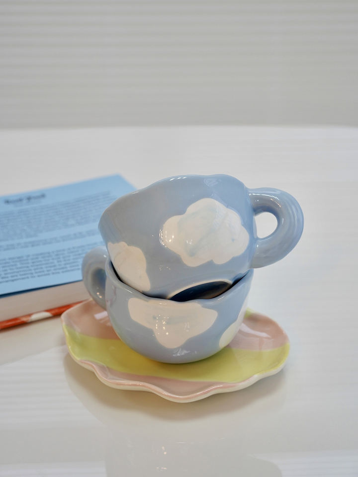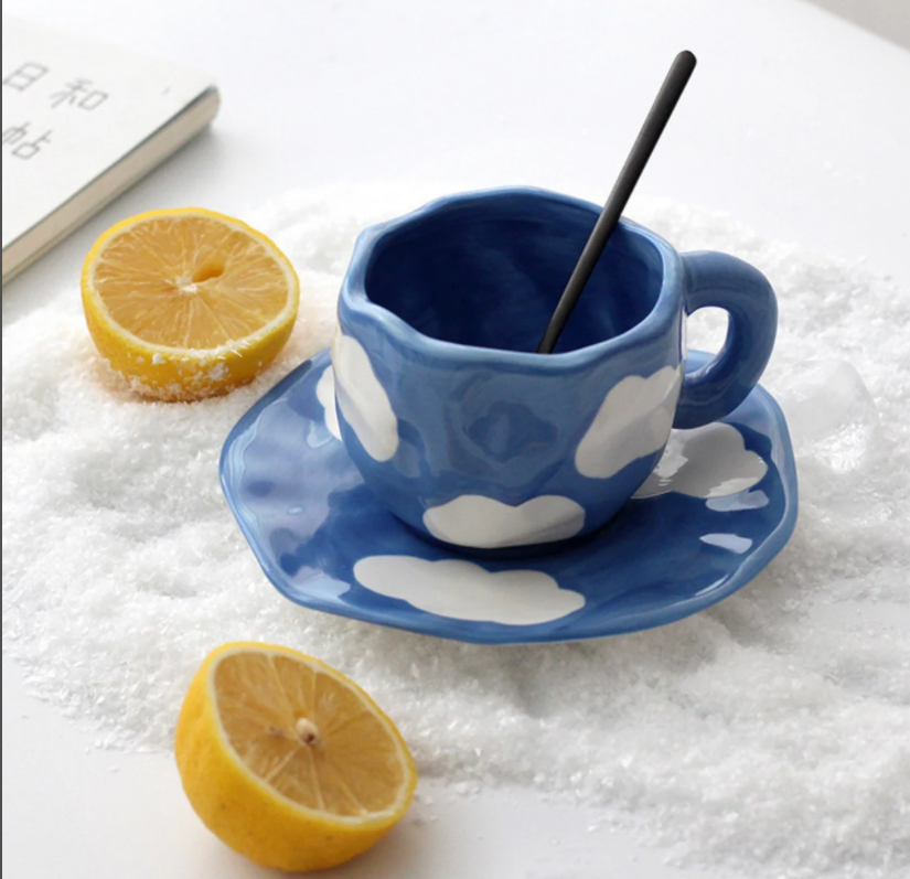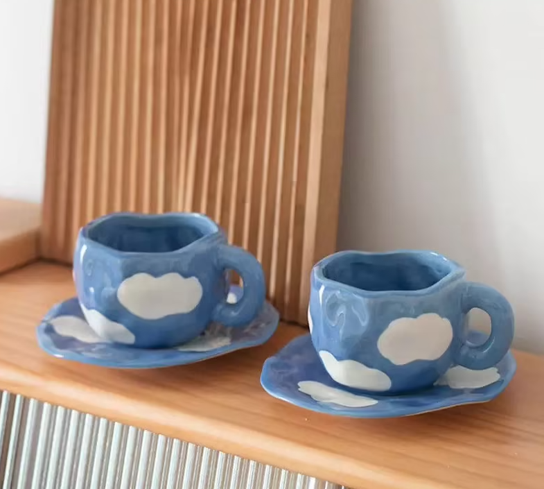 Nombre del elemento:Estética nube pintura cerámica azul Taza de cerámica con platillo conjunto