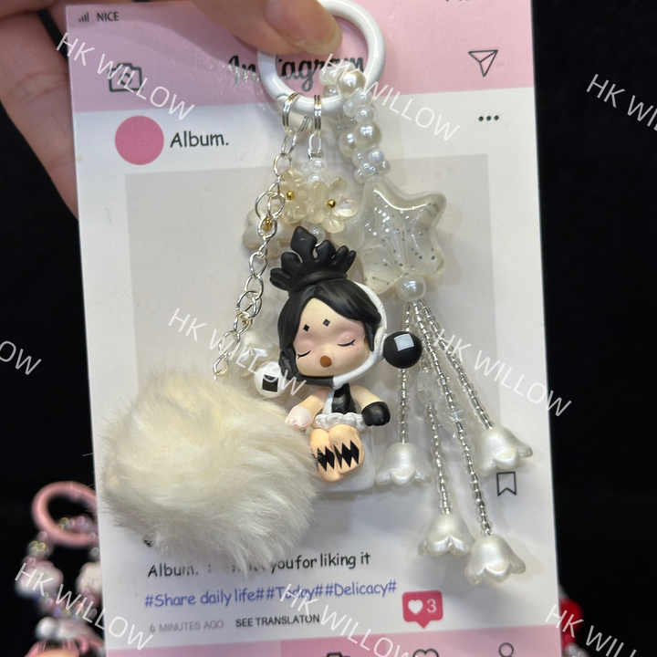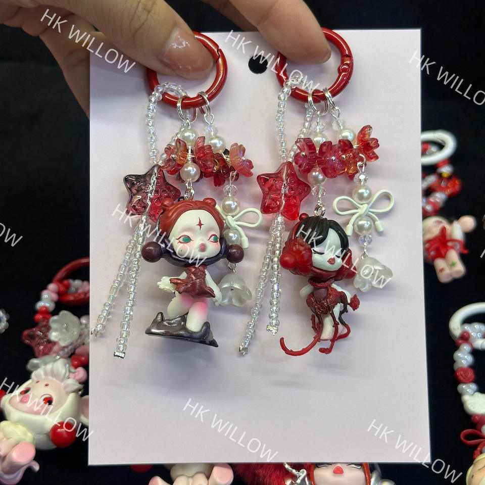 Llaveros de cadena estéticos Y2K, dijes para teléfono Skullpanda, cordón para teléfono con cuentas de mariposa y estrella, bonitos para mujer, 10 cm, precio bajo al por mayor