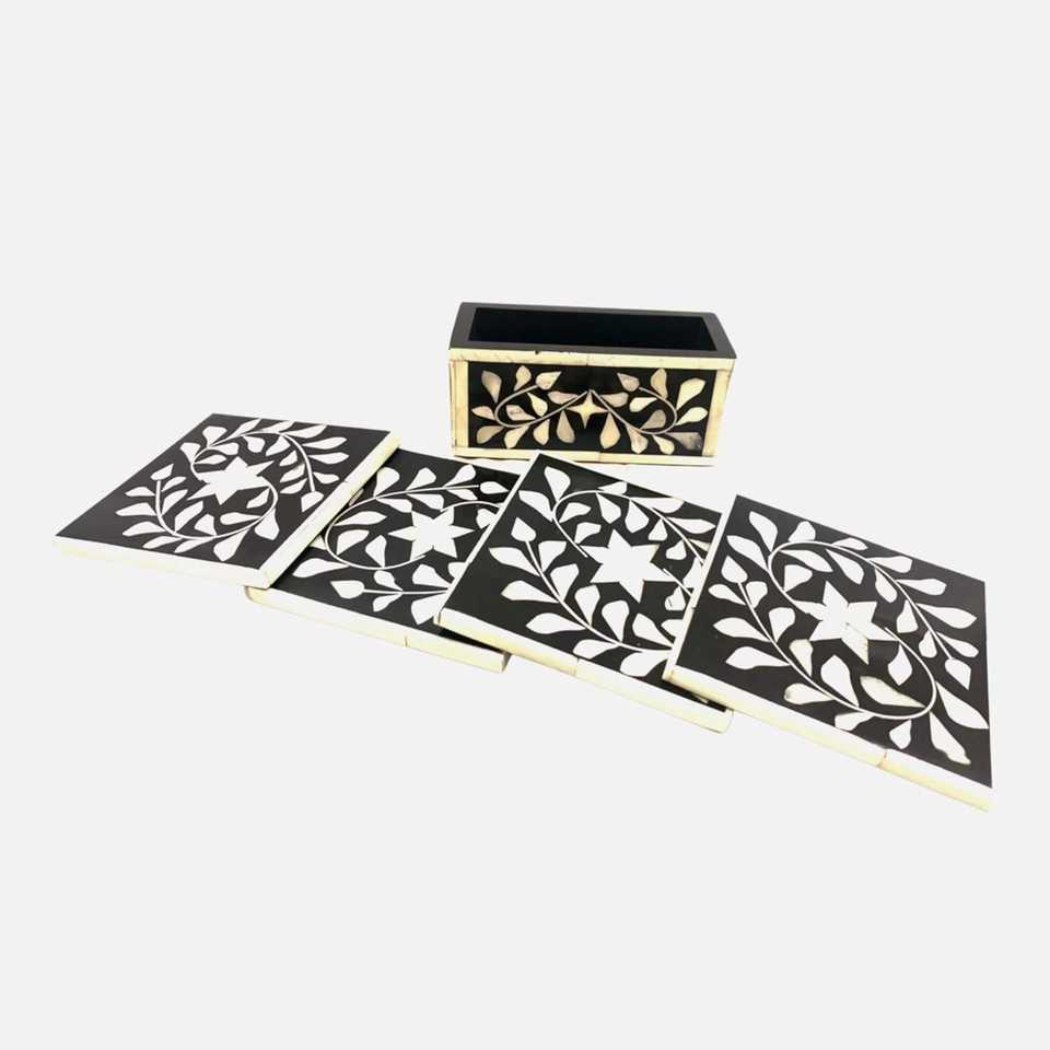 Juego de 4 Posavasos de Incrustaciones de Hueso de Alta Calidad, Diseño Personalizable, Ecológico y de Lujo, Decoración Artesanal para el Hogar