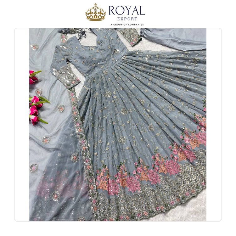Precio asequible, calidad estándar, estilo clásico, hermosa seda romana pesada y microalgodón con bordado, traje Anarkali DE TRABAJO