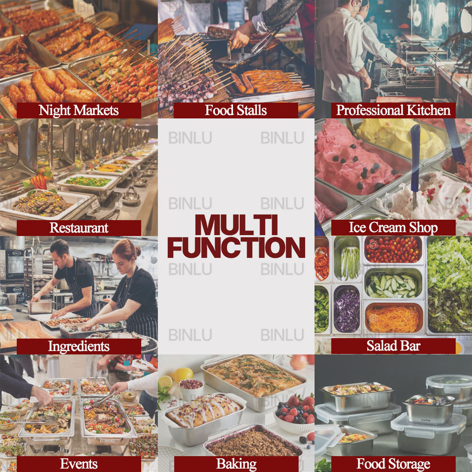 Juego de sartenes de hotel de acero inoxidable asequible con tapa Buffet Almacenamiento de alimentos 1/9 6,5 cm Tamaño Pan Solo plato para servir Contenedor | BINLU