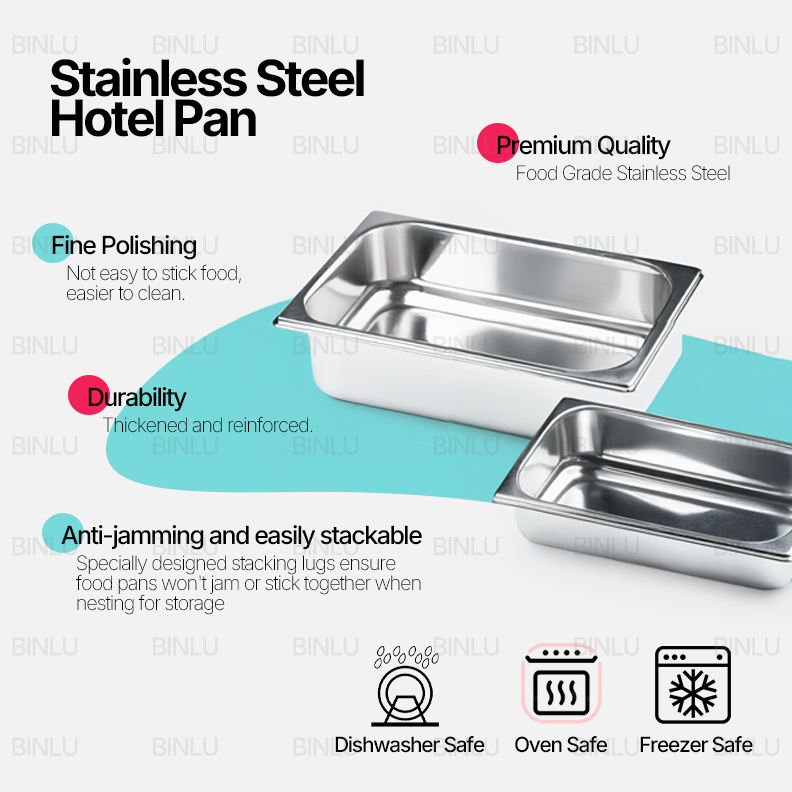 Juego de sartenes de hotel de acero inoxidable asequible con tapa Buffet almacenamiento de alimentos 1/6 10cm tamaño Pan solo plato contenedor | BINLU
