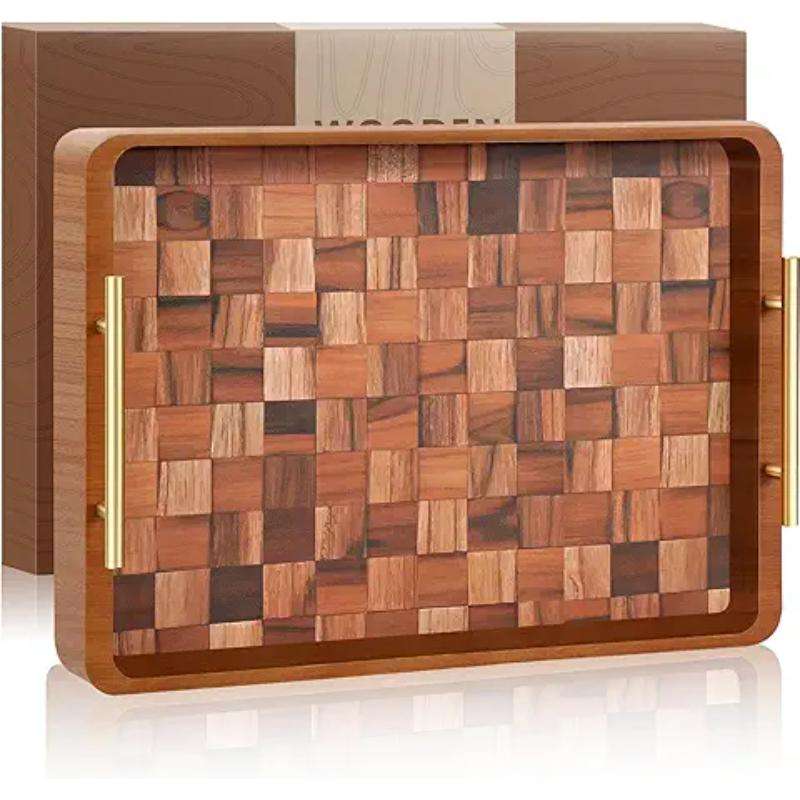 Bandeja de madera asequible para servir comida, café, desayuno, bandeja de madera sin terminar hecha a mano de alta calidad para regalo de la India