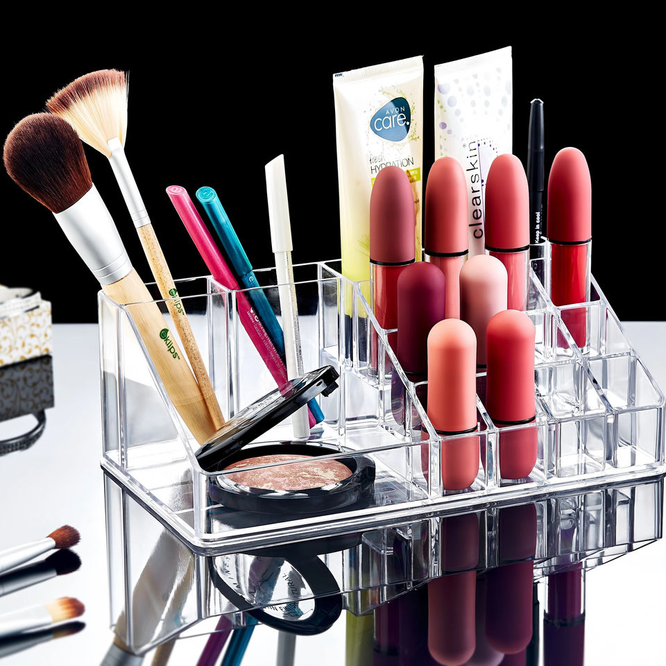 Uso:Organizador de maquillaje de acrílico transparente con compartimentos