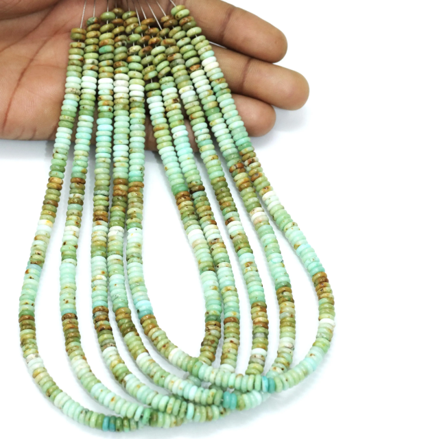 Cuentas de Turquesa Africana Planas en Forma de Rondelle con Efecto Degradado | Cuentas de colores verde, azul y marrón con tonalidades naturales | Cuentas Redondas Lisas | Suministros para la Fabricación de Joyería