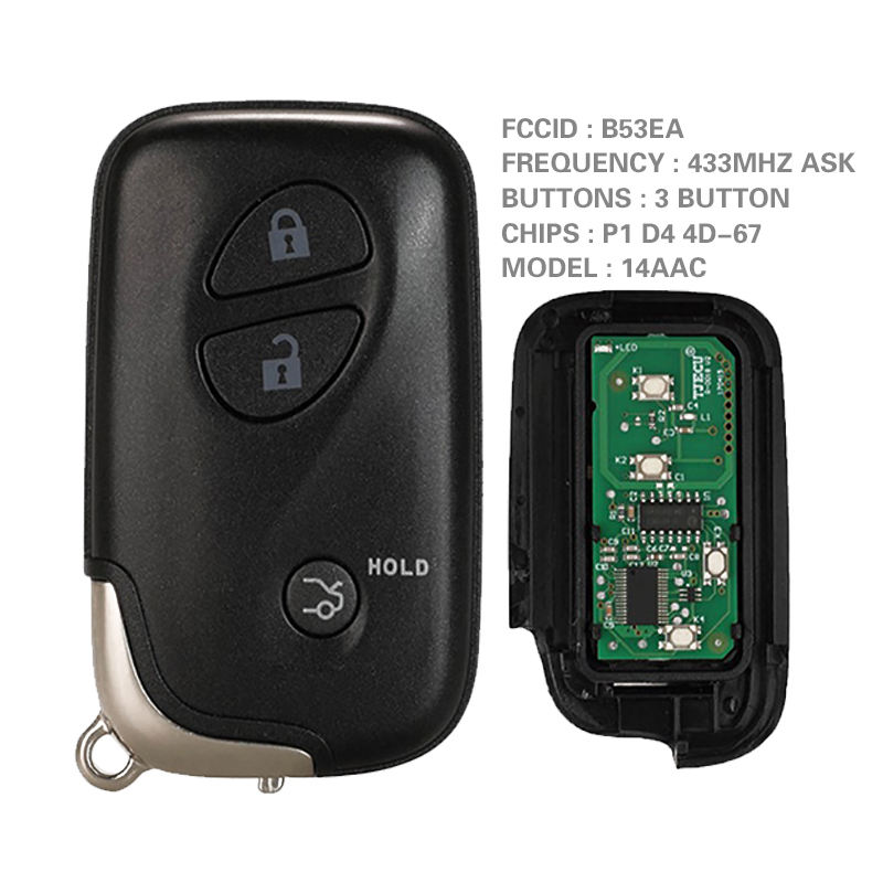 Llave Inteligente de Repuesto de 3 Botones para L-exus GS300 IS220 IS250 LS460 2006+, 433MHz 14AAC FCCID B53EA 89904-30311 CN052041
