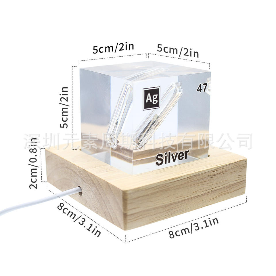 Cubo de Plata Ag 47, Espécimen Físico con Incrustaciones de Elementos Químicos, Regalo Coleccionable Creativo