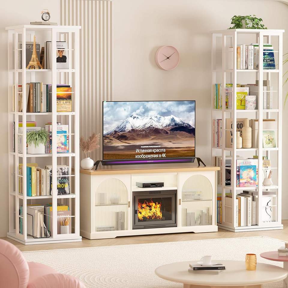 Estantería Giratoria Multifuncional Aheaplus, Exhibidor Giratorio de Madera de 360°, Estante Estrecho de 5 Niveles, Color Blanco