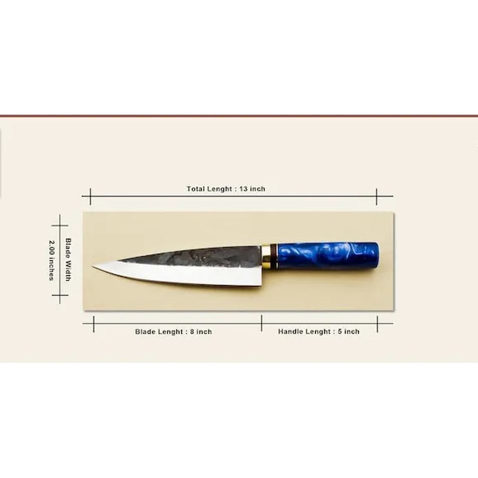 Cuchillo de Chef de Acero al Carbono de 13 Pulgadas Hecho a Mano por Ahmad Fabric, con Funda de Cuero, Mango Elegante, Personalizable, Grado Industrial OEM