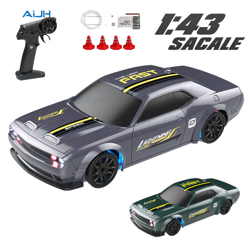 Coche mini RC AiJH para drift 1:43 de velocidad variable, control remoto proporcional completo con faros y luces bajo la carrocería, coche de carreras RC
