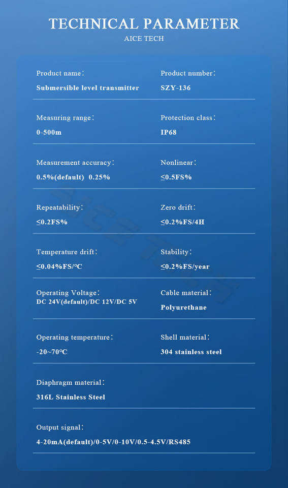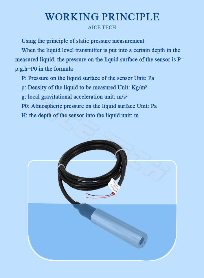 Medidor de Nivel de Agua Aice Tech, Sensor de Nivel Sumergible IP68 4-20mA para Aguas Residuales, Agua de Pozo, Río, Embalse, Agua Industrial