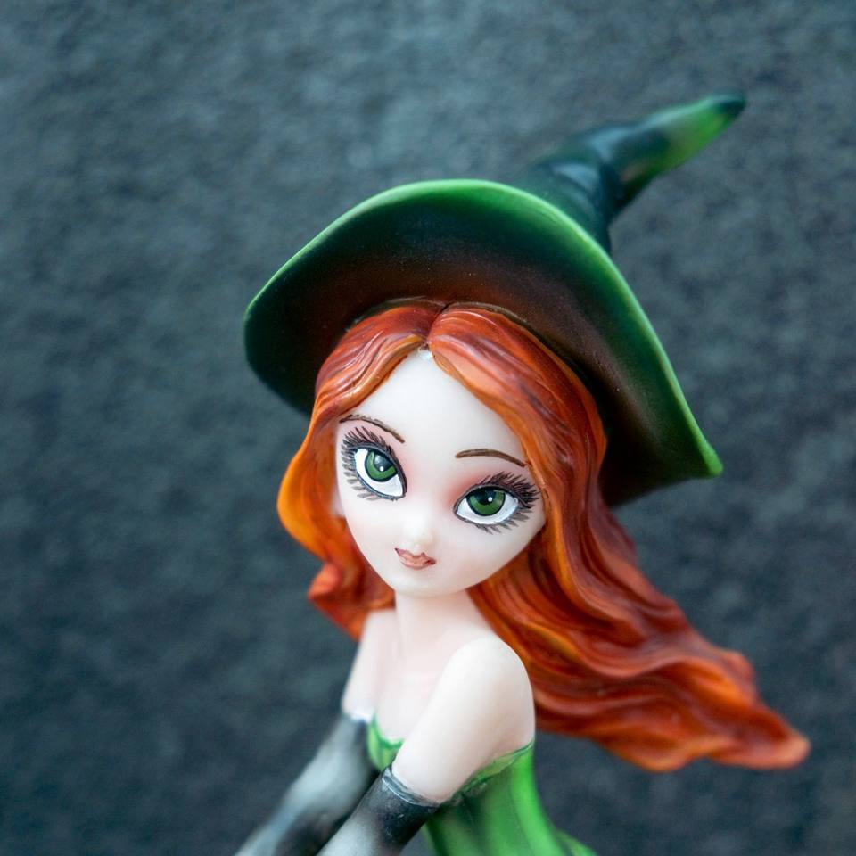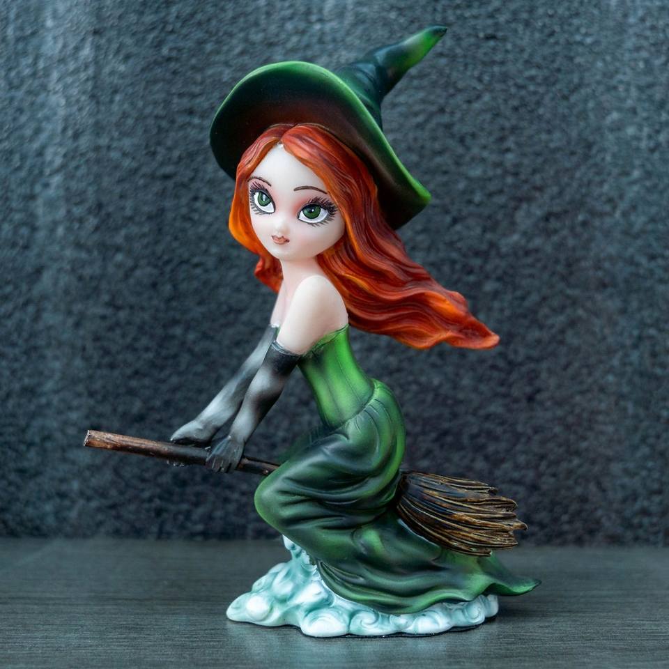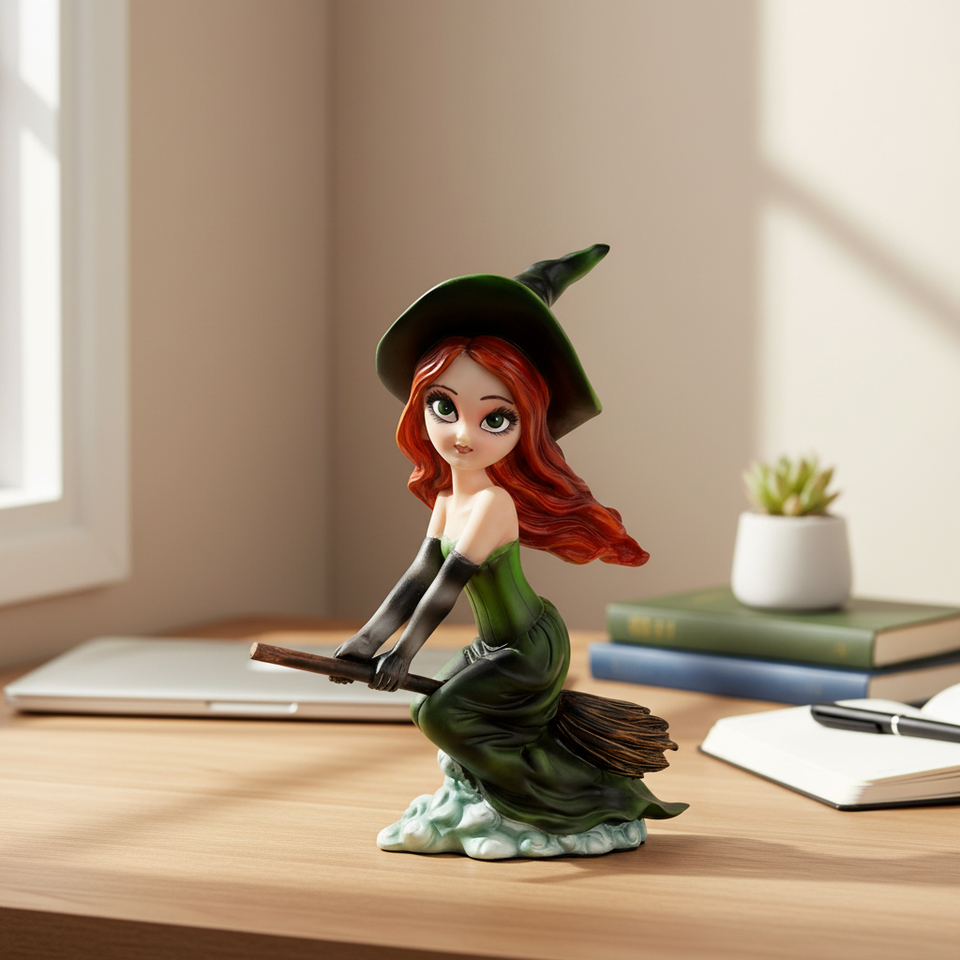 Estatua de Resina Pintada a Mano de una Bruja con Escoba, Estilo Ángel, Decoración de Halloween para el Hogar, Figura con Detalles Finos