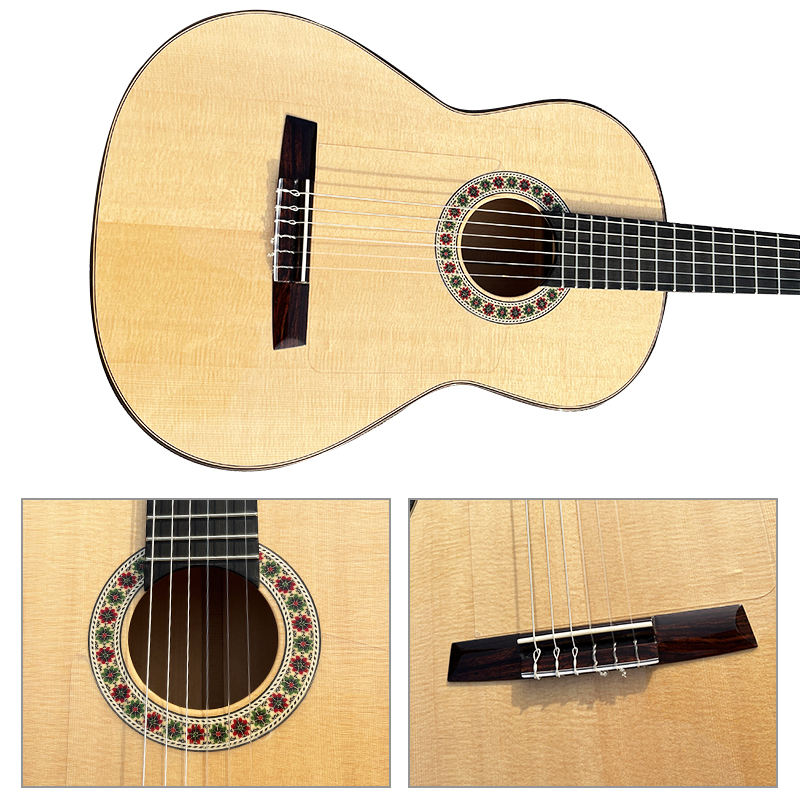 Guitarra Flamenca Española Vintage de Alta Calidad Marca Aiersi, Nivel Maestro, Totalmente Sólida, Hecha a Mano, con Cuerdas de Nailon, Guitarra Clásica