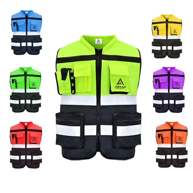 Chaqueta de Seguridad Aifran Resistente al Viento de Alta Visibilidad, Chaleco Reflectante con Múltiples Bolsillos para Trabajos de Construcción