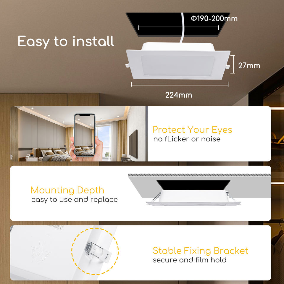 Aigostar 8719138833054 Foco LED Empotrable de Techo para Interiores, 18W, 2000LM, Base E27, 3000K/6000K CCT, China