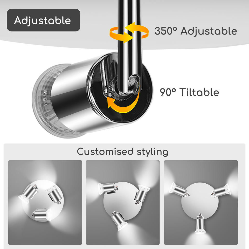 Lámpara de Techo Aigostar Ajustable y Giratoria, LED, 3 Focos GU10, Modelo 8719138826551, Hecho en China, para Dormitorio