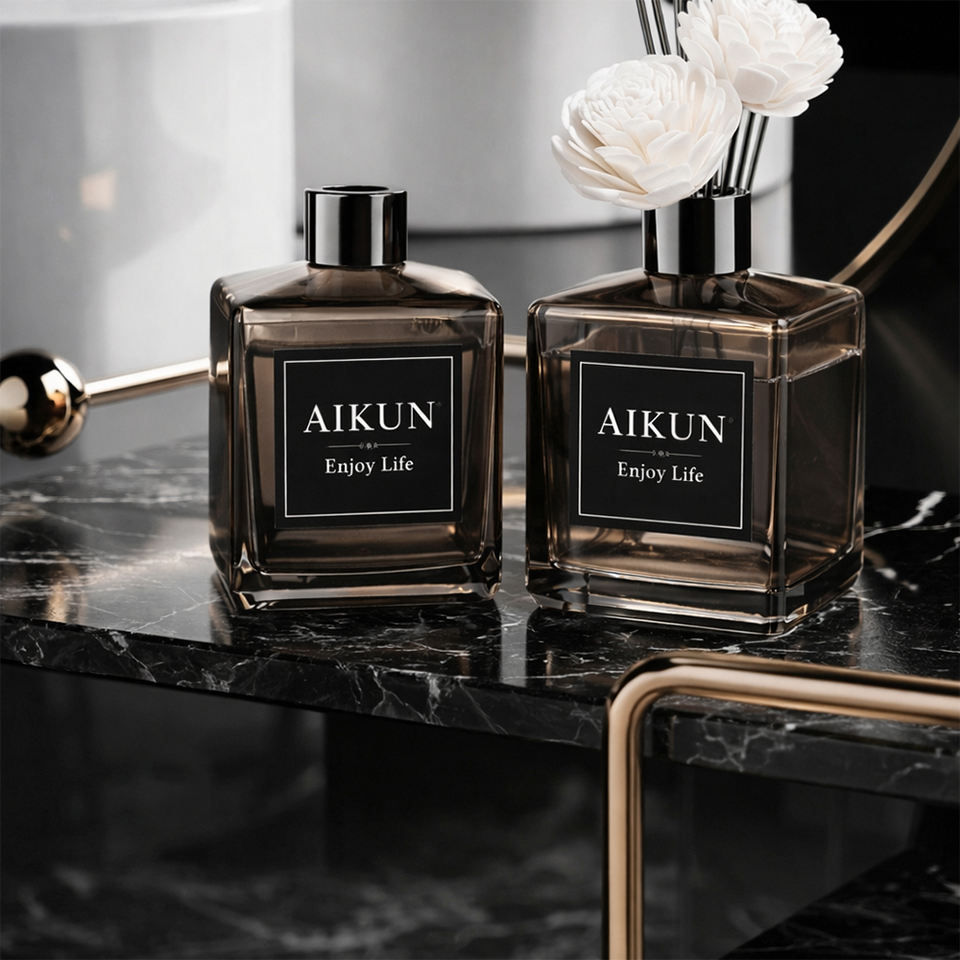 Difusor de Aromas Aikun de Lujo en Botella de Vidrio, DIY, Fresco, Duradero, Ecológico, Sin Alcohol, Fragancia Natural para el Hogar, Ratán Natural