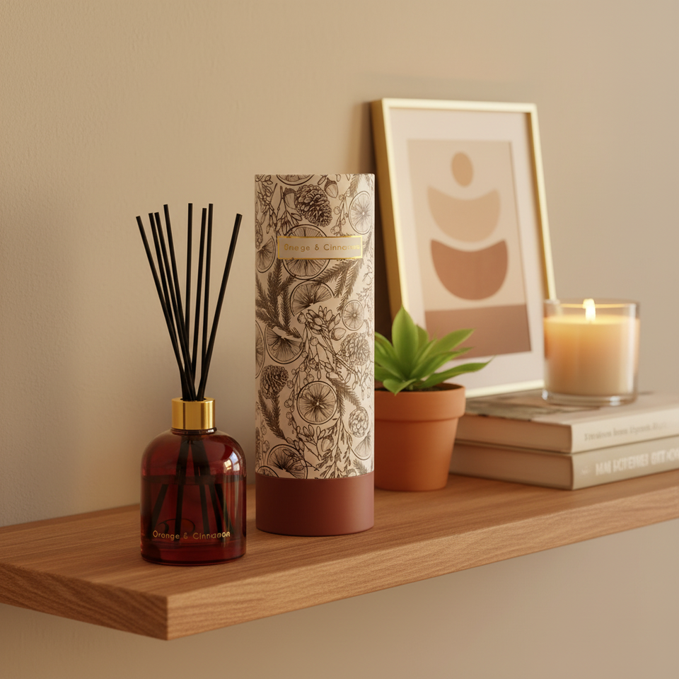 Difusor de Aromas Aikun de Lujo en Botella de Vidrio con Aroma a Naranja y Canela, Difusor de Aroma Duradero con Varillas Naturales y Caja de Regalo