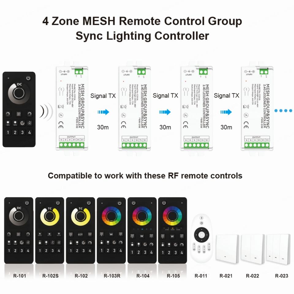 Application:4 Zone MESH Group&Sync Lighting Controller