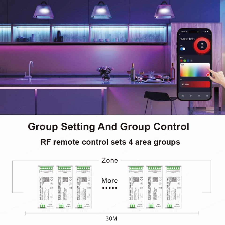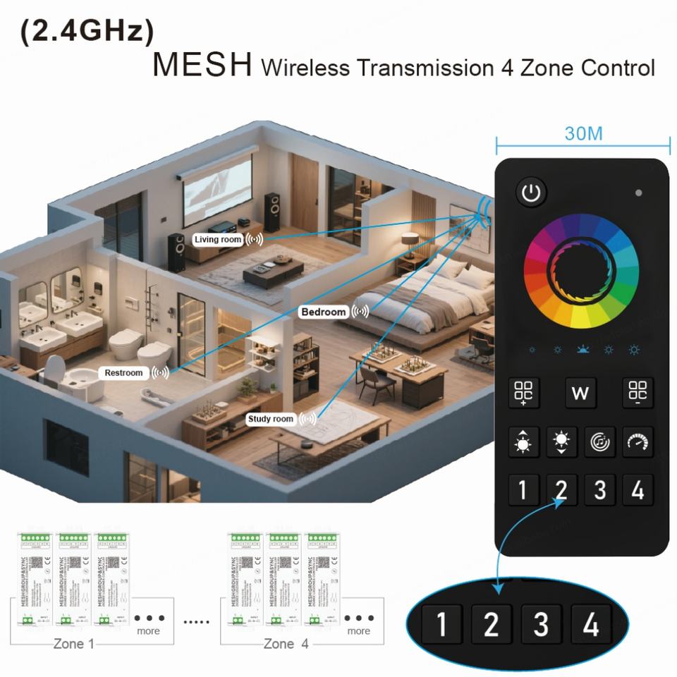 Application:4 Zone MESH Group&Sync Lighting Controller