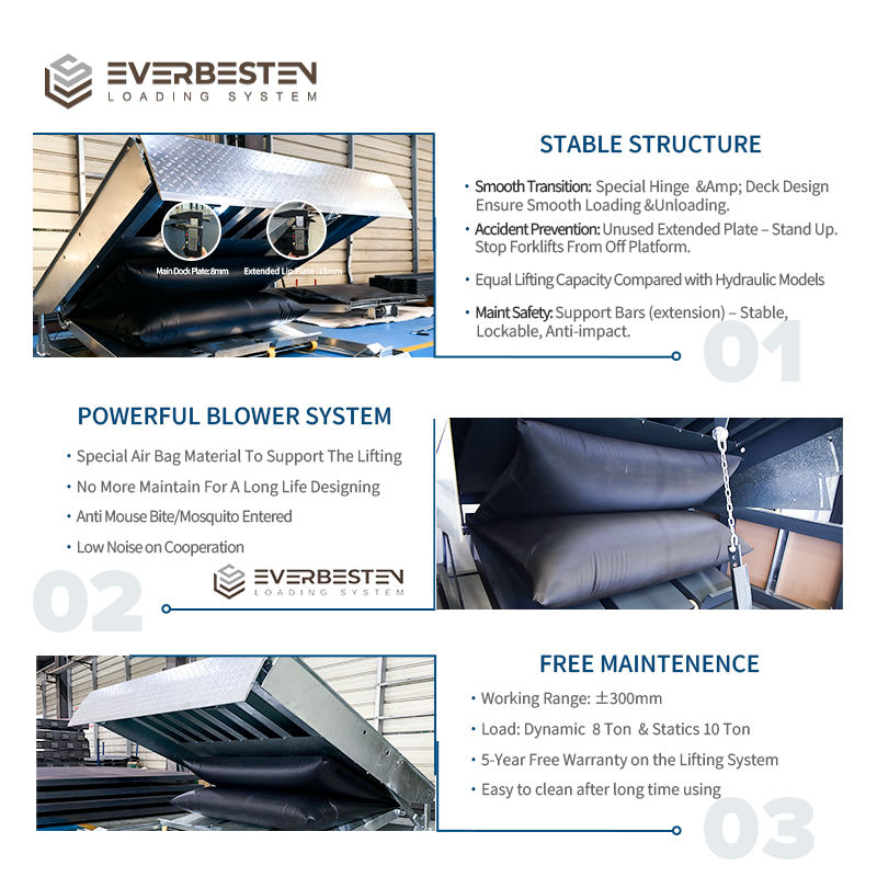 Sistema de Nivelador de Andén con Bolsa de Aire, Alineación Precisa del Andén, Alta Precisión, Operación de Carga de Contenedores en Almacenes con Montacargas, Uso con Materiales