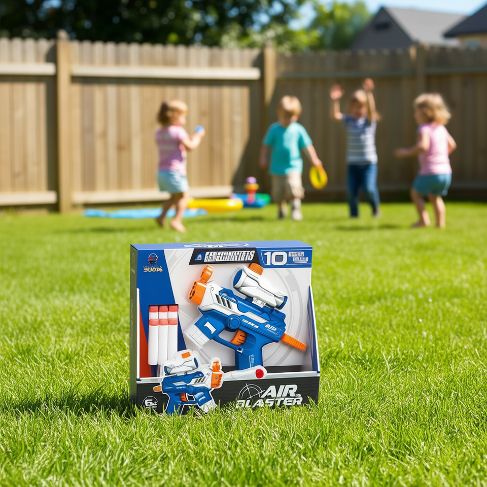 Air Blaster Soft Bullet Gun Blue Gray Manual Launcher With Sight And 6 Bullets For Kids Ages 6 To 13 Years