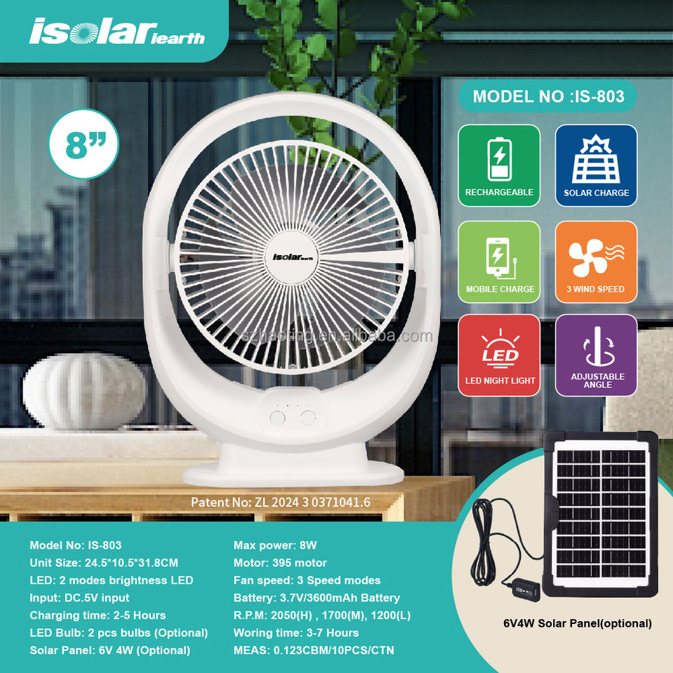 Ventilador de mesa recargable eléctrico de 8 pulgadas
