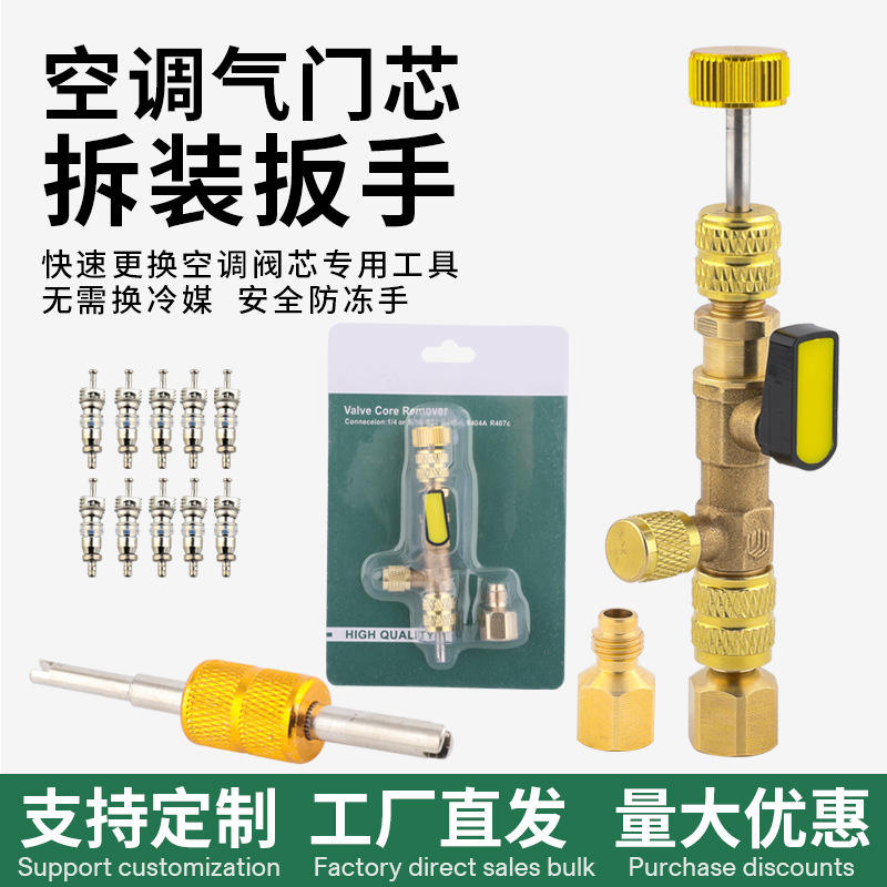 Herramienta de extracción de válvulas de aire acondicionado de latón de 1/4 pulgada, conversión R410 R32 para reparación de refrigeración