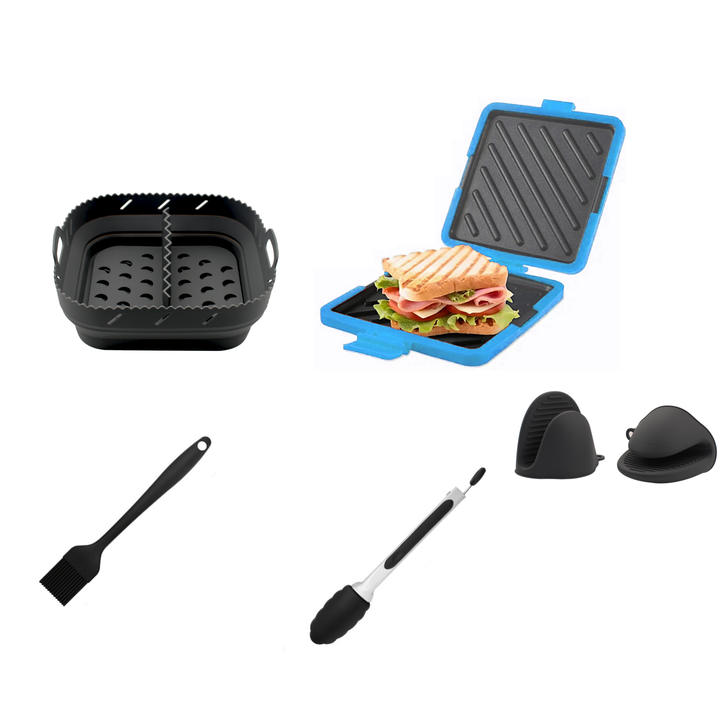 Kit de accesorios para freidora de aire, revestimientos de silicona, parrilla para hornear, juego de pinchos, cesta, alfombrillas antiadherentes de repuesto, pergamino