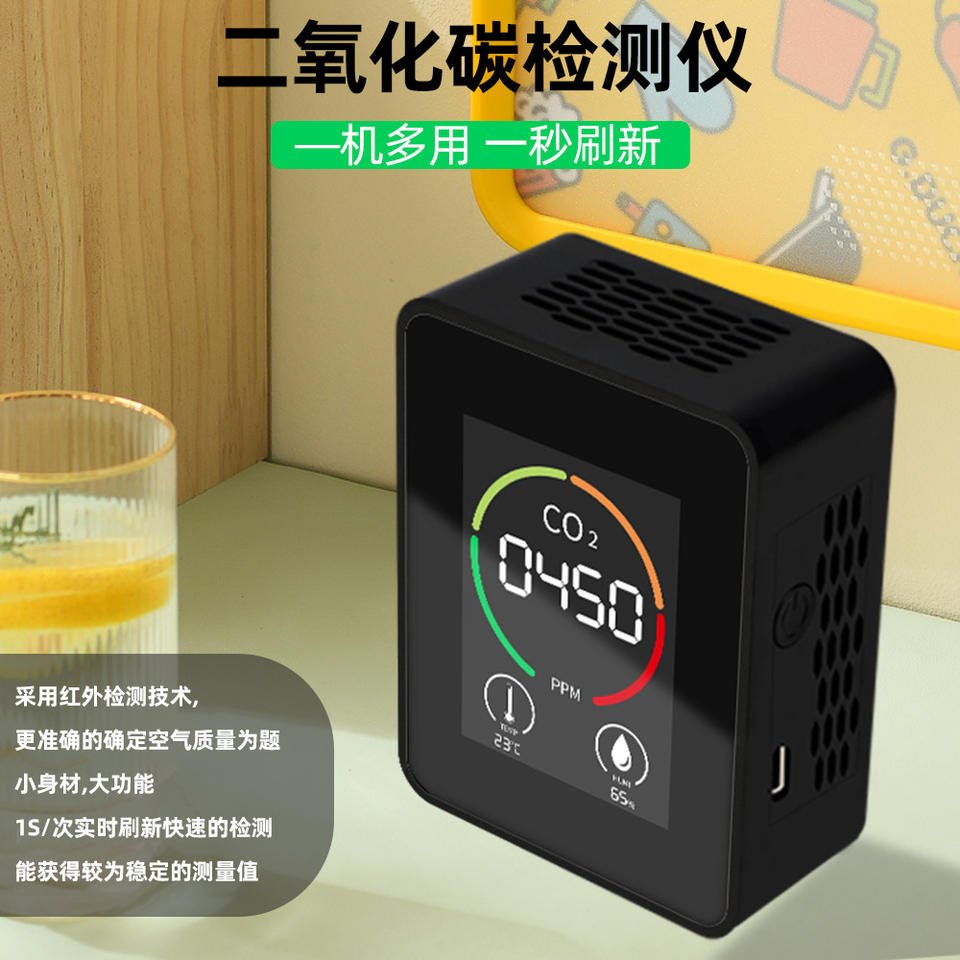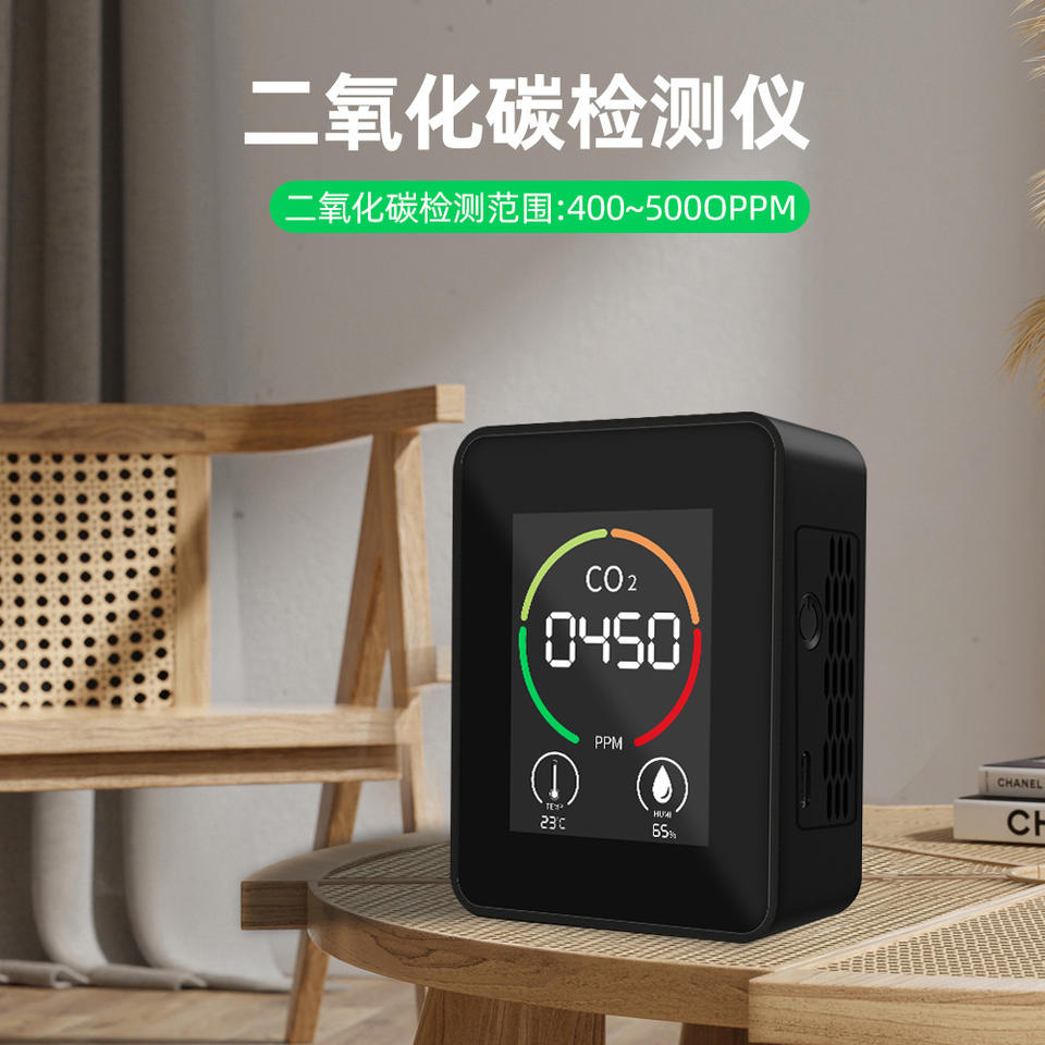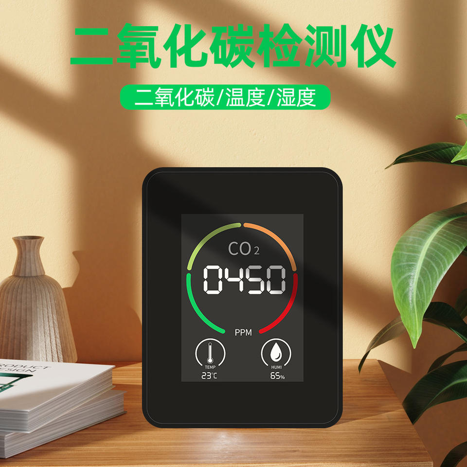 Monitor de Calidad del Aire, CO2, Temperatura, Humedad, Pantalla LED Digital, Detector Interior, 450 PPM, 23C, 65% RH
