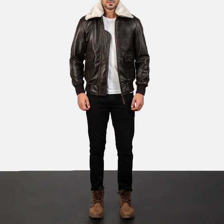 Airin-Chaqueta Bomber de cuero para hombre, en blanco y negro, para hombre, de la marca Airin