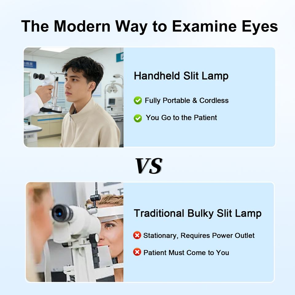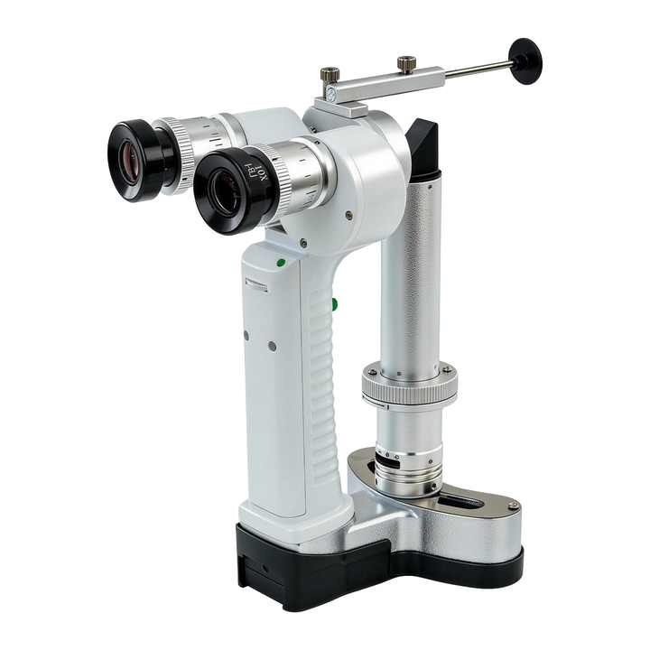Microscopio de Hendidura LED Portátil Aist Optics HSL-2 con Diseño de Mano para Exámenes Oftalmológicos y Veterinarios, Color Plateado